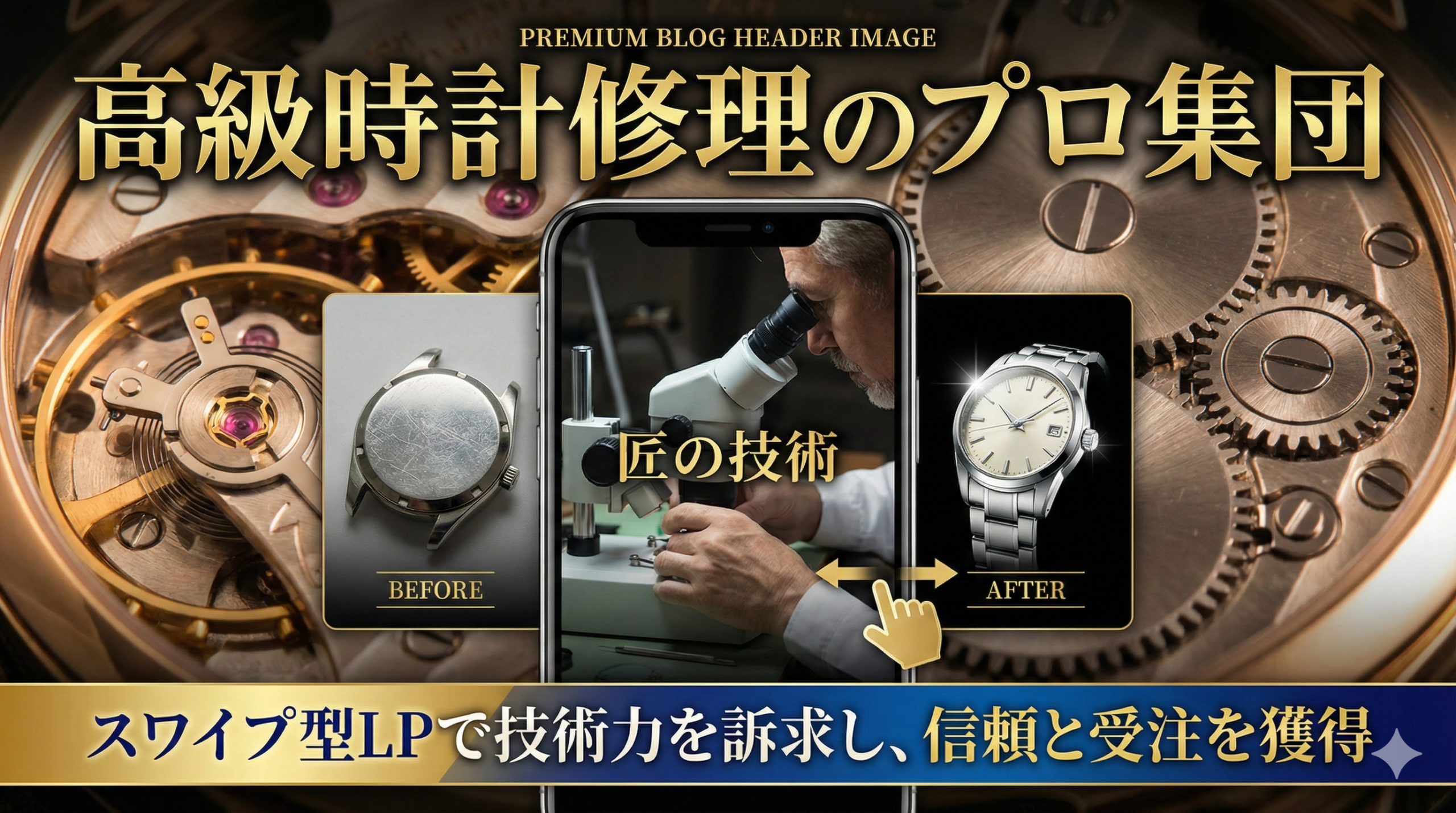 このセクションでは、高級時計修理市場の顧客心理、スワイプ型LPが集客にもたらすメリット、そして技術力を「物語」として顧客に伝えるためのLP設計の基礎戦略について解説します。高い信頼性を視覚的に訴求し、高額な受注を獲得するための基盤を探ります。