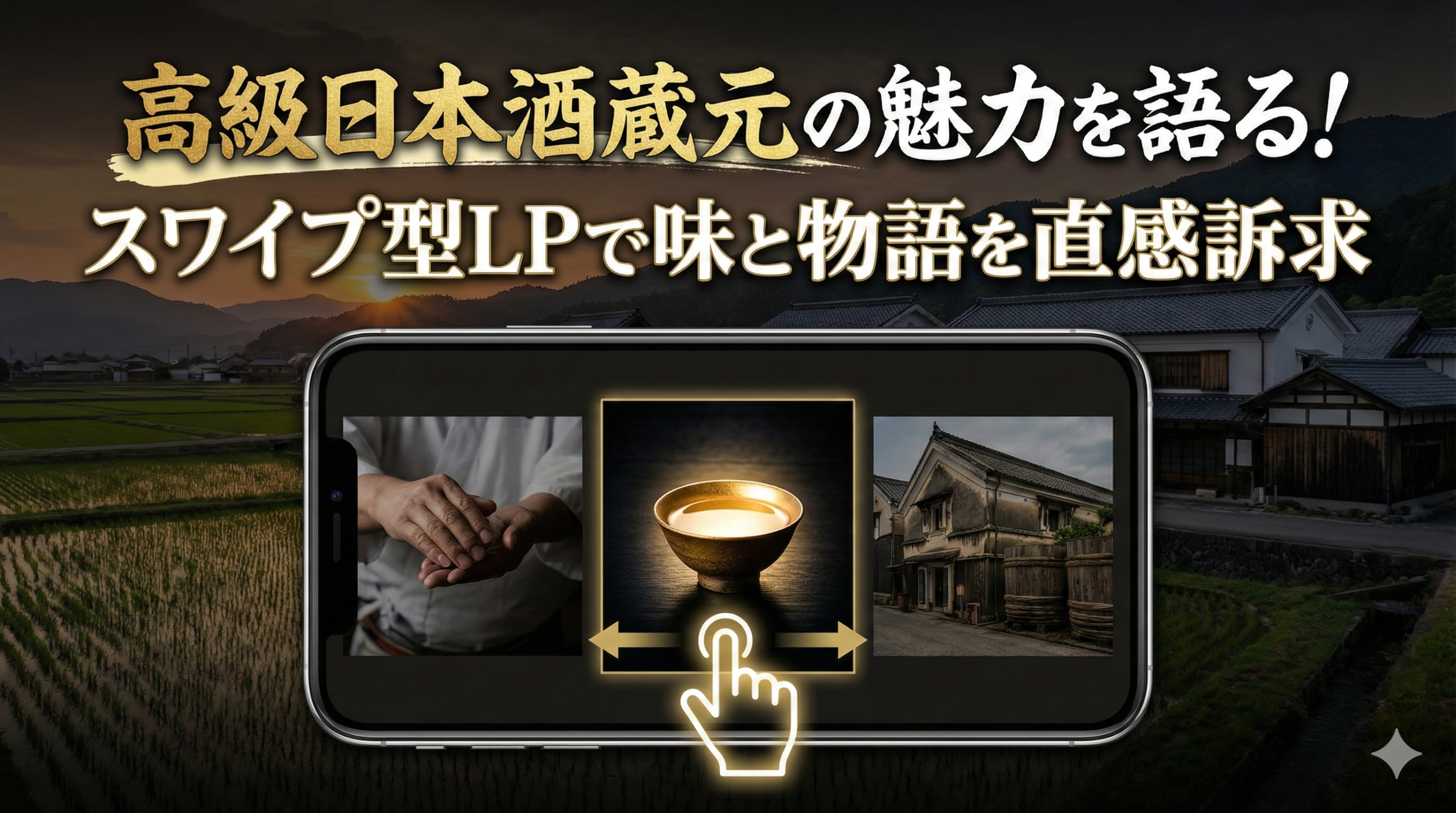 スワイプ型LPは、高級日本酒の「ストーリーテラー」として機能します。