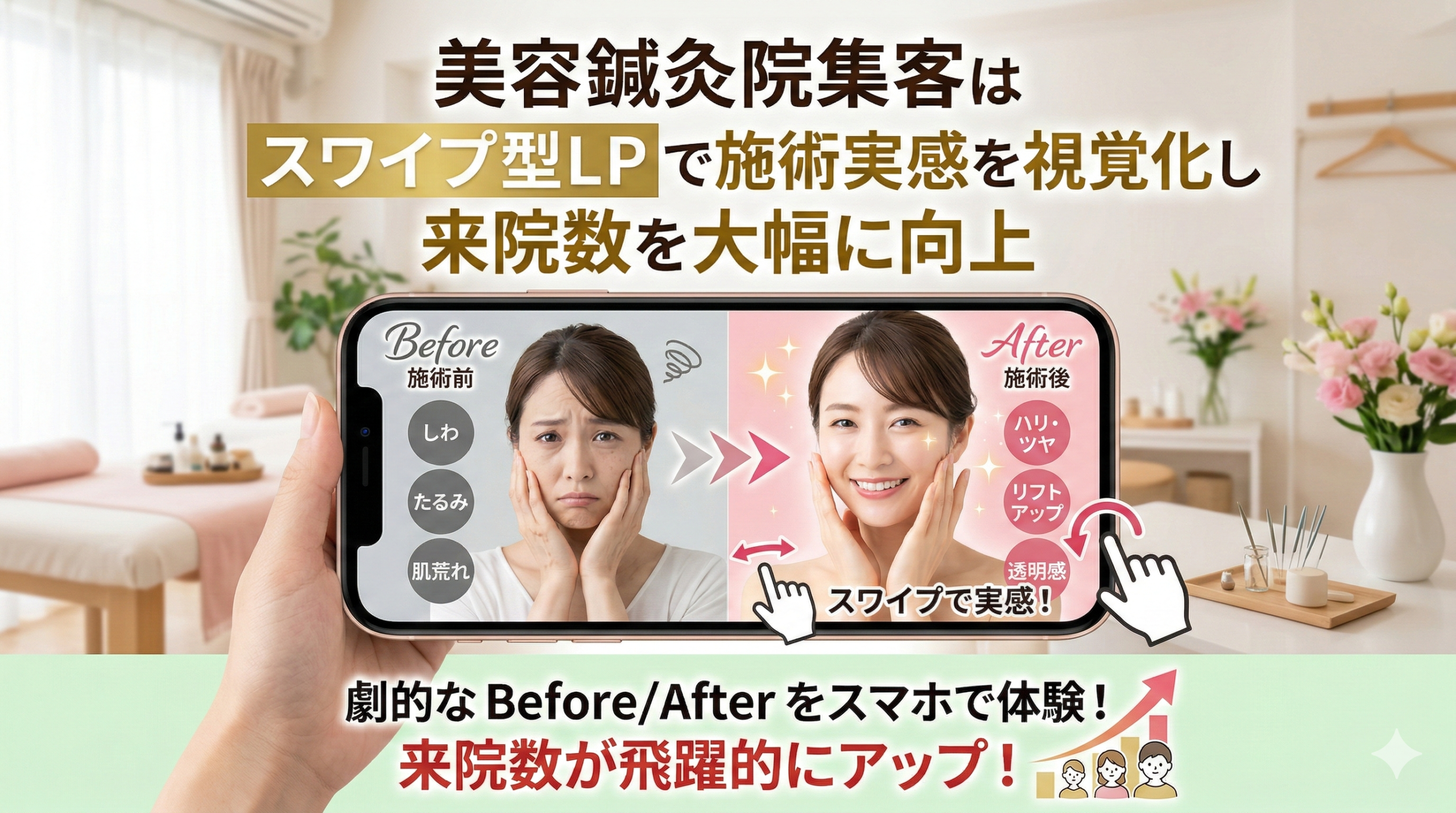 それが、「美容鍼の施術実感(プロセス)をスマホ特化型の『スワイプ型LP(ランディングページ)』で視覚化し、LINEチャットで個別の不安を優しく刈り取る」というハイブリッドな集客戦略です。